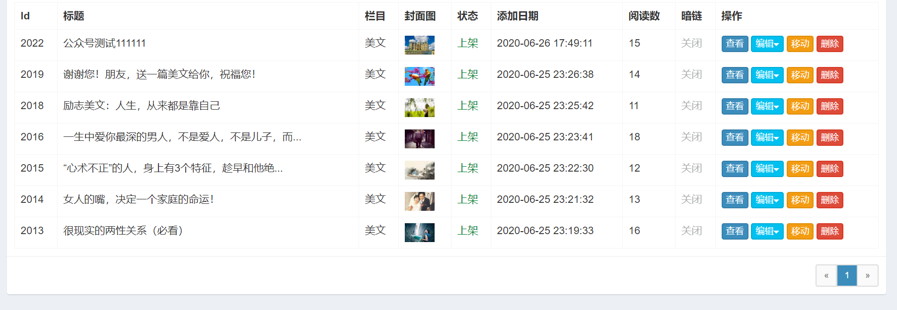 这个是后台的内容列表,都是一些平常的美文内容,没有涉及政治、暴力呀,为什么会被封?