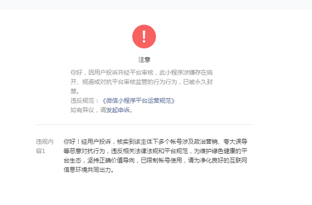 官方来一个涉嫌绕开平台。我申诉,给了原图,让官方给出有何不一样。证据也不给,就直接永久封号。
