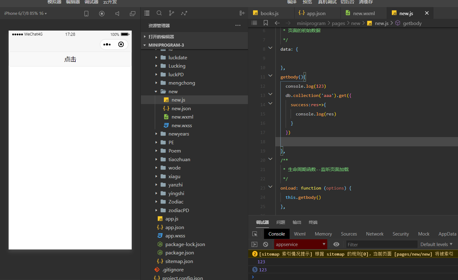 getbody(){console.log(123)db.collection('aaa').get({success:res=>{console.log(res)}})},的出来多了就不行了