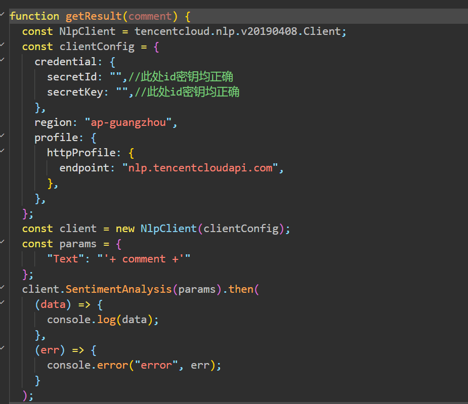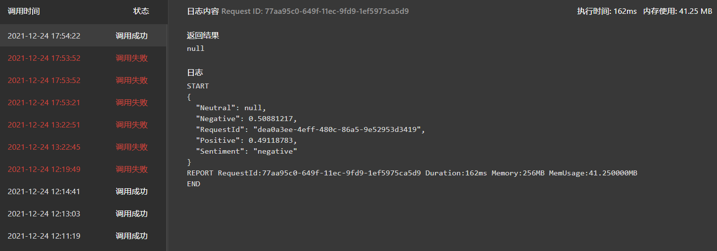 我云函数的代码是腾讯云api官网自动生成的,能够成功调用但是返回结果为null,这是为什么呢?调试基础库已经是最低2.44,日志及代码如下,请大神解答,谢谢!感激不尽!!