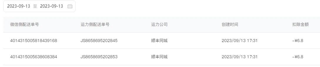 微信侧配送单号:4014315005818439168、4014315005638608384(多发单多扣)