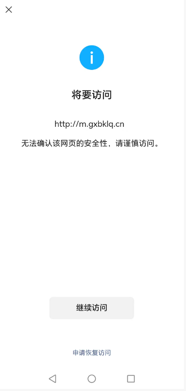 您好,域名gxbklq.cn在西部数码注册并备案通过,http://m.gxbklq.cn/浏览器访问正常,我是网站开发者,访问时间如图2026/1/16,点开网址提示“无法确认该网页的安全性,请谨慎访问。”经检查网页里没有不安全的内容,请核实后帮忙解除拦截,谢谢!尽快处理,急急急,现在需要打开使用,谢谢!