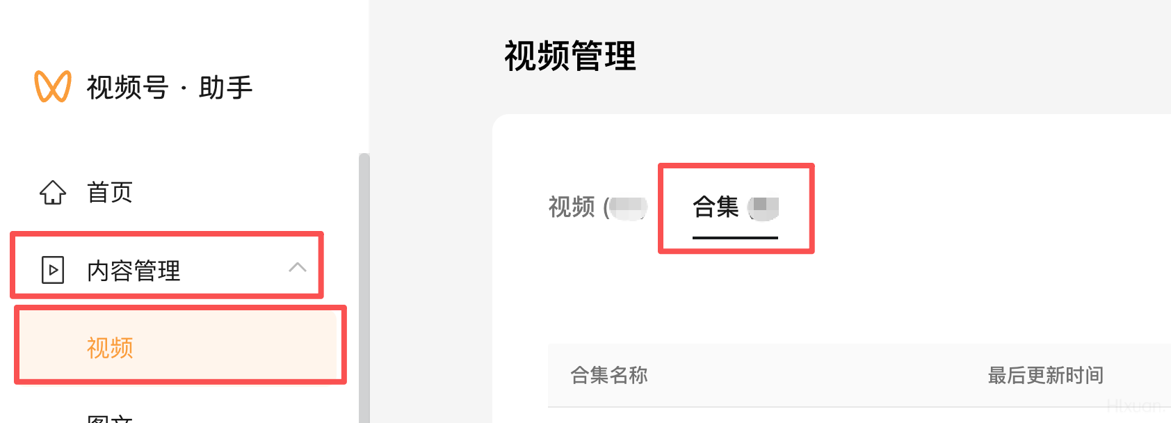 图片1:这个是视频号主页,这里展示的合集,可登录视频号助手 https://channels.weixin.qq.com —— 内容管理 —— 视频 —— 合集 创建。
