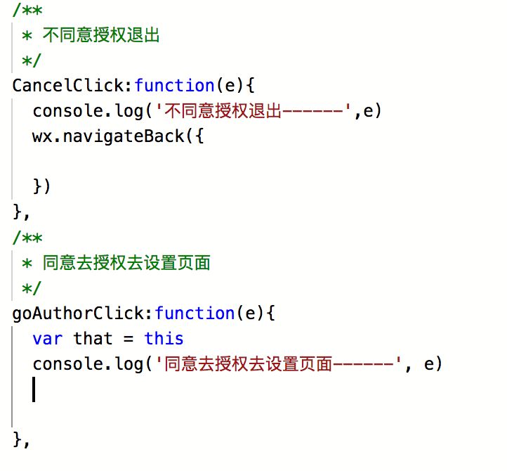 是哪里写错了吗?走到退出的方法里了,打印了不同意授权退出那句话,但是wx.navigateback这个方法没有起作用