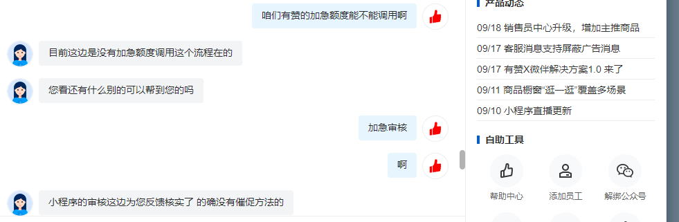 有赞一直推脱说没有,导致我们小程序提交三天了还没能审核。线下推广预定的物料不用就要作废了