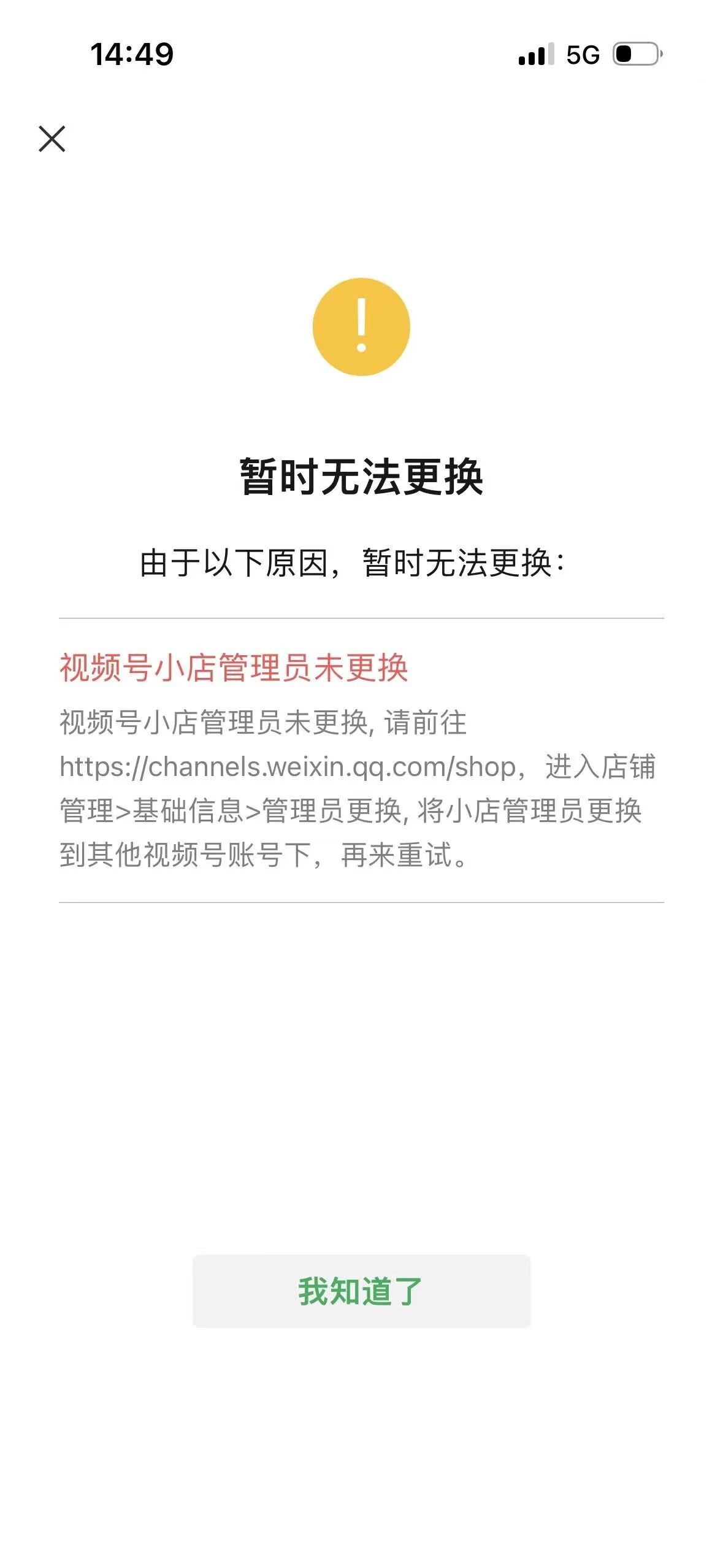 我也发现了这个问题,而且我的视频号小店已经换过一次管理员了,就剩一次机会了,如果用第三个微信号的话,根本换不回来,有没有大佬解决这个问题的