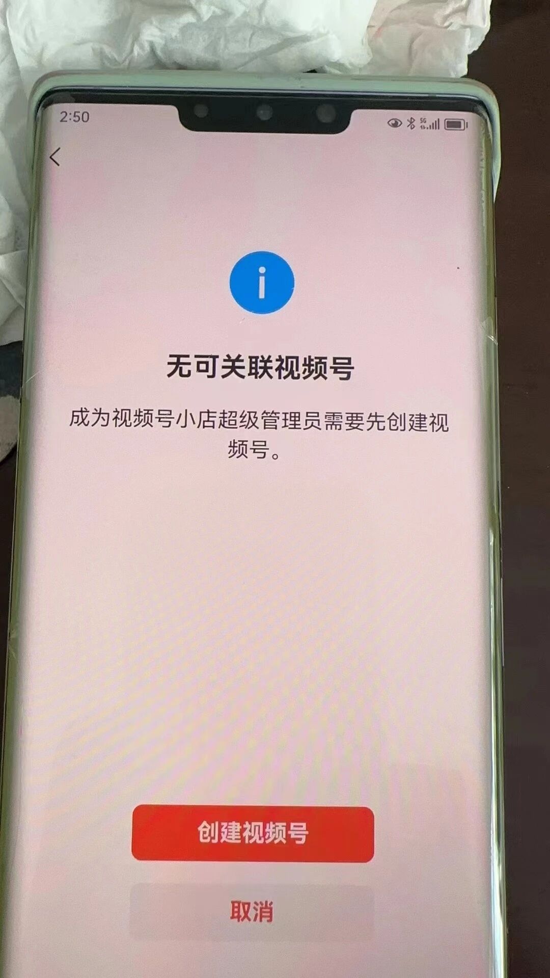这个时候系统会提示如下图,需要先把微信A注册的小店的管理员解绑,假设我把A注册的小店管理员权限给了微信B,这个时候会提示微信B没有注册视频号,需要创建视频号,如果这个时候微信B注册了视频号,可以成功接管微信A管理的小店权限了,终于可以修改微信A的视频号的管理员权限了,这个时候想修改为B微信,会提示B微信已经注册了视频号,陷入一个死循环。