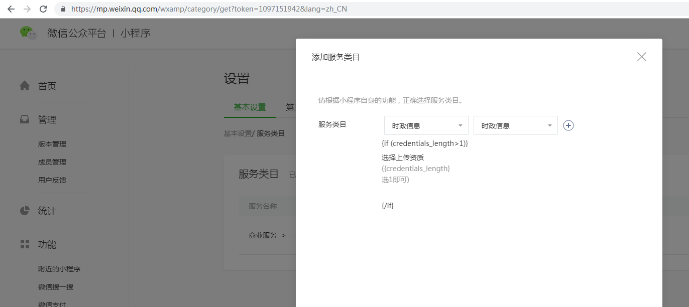 选择时政服务类别,条件判断相关的代码直接显示到页面上了,见附图
