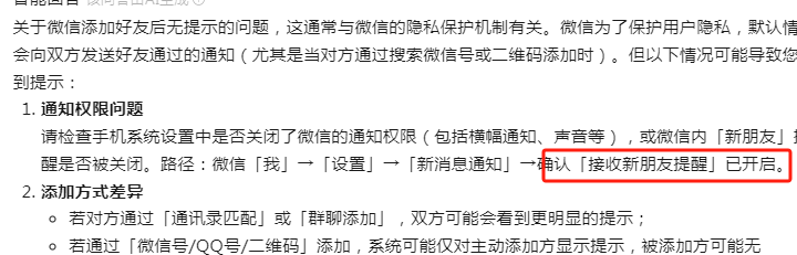 最近这个问题很困扰我的工作,能不能抓紧处理一下呀,好友通过以后没有任何提示,还以为客户还没有加我呢??
