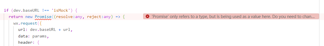 小程序采用了typescript模板,并打算使用promise,但是报错:'Promise' only refers to a type, but is being used as a value here. Do you need to change your target library? Try changing the `lib` compiler option to es2015 or later.ts(2585)
