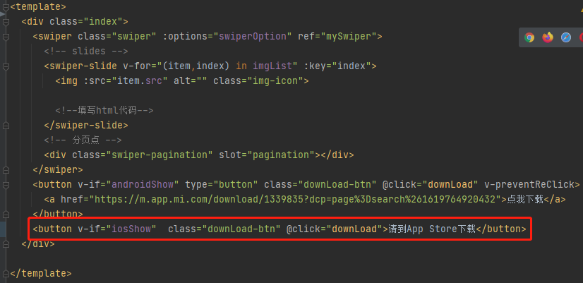 移动端是用vue写的,ios用微信扫描二维码进入下载网页,但是点击这个button的时候 不能触发点击事件。百度了好久,什么办法都试过了都没有用。有大佬知道什么问题吗,用其他扫码打开浏览器是可以触发的,就用微信扫码打开的时候不可以触发