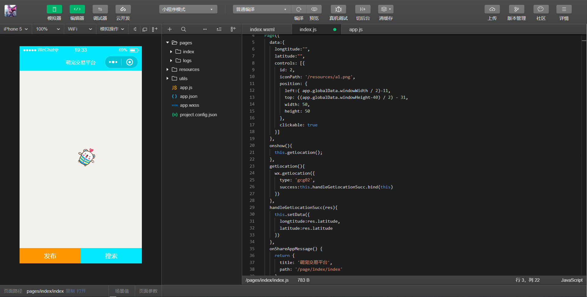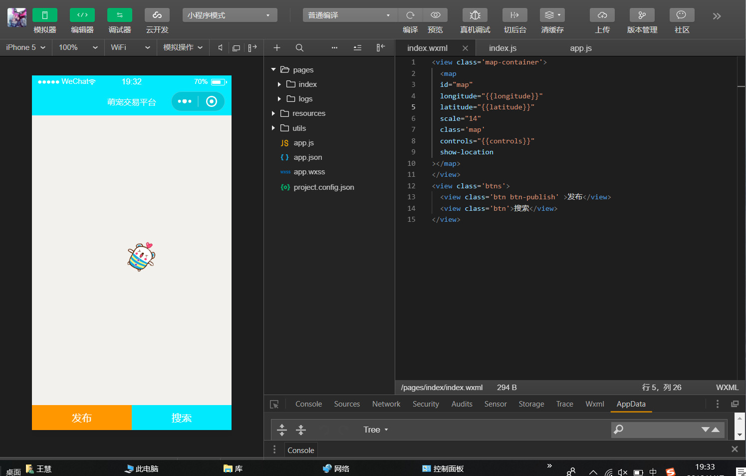 这个也是按教学视频打的,不知道为什么地图弄完getLocation之后地图就不显示了,请问是哪里出了问题啊 ?