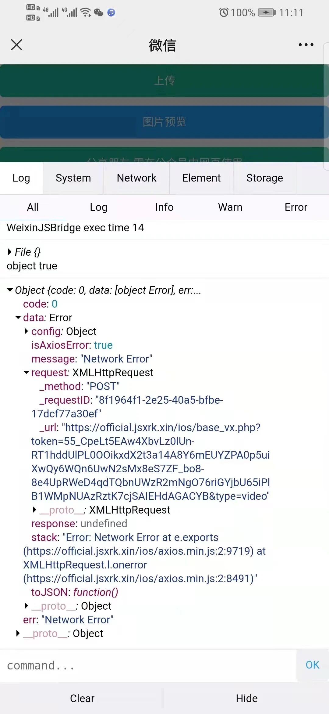 微信h5 上传视频 拍摄上传正常,选择文件上传失败,后台没拿到数据(我怀疑都没走到后台)