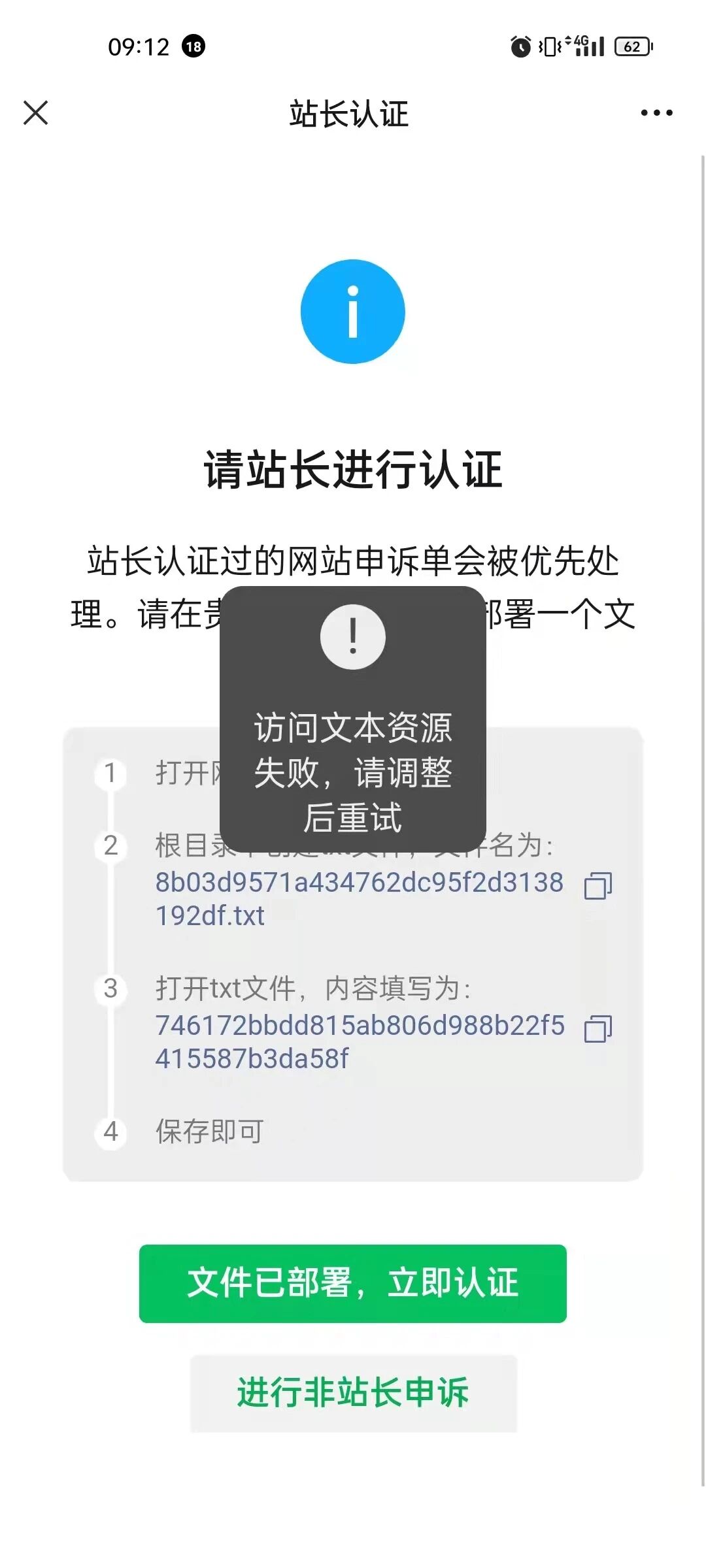 部署文件可正常访问到。经检查网站服务器并没有发现任何腾讯/微信服务器过来的请求,也没有任何安全措施拦截。因此是不是微信那边网络有问题,需要你们协助排查