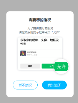 (1):你好,小程序帐号登录功能暂未符合登录规范要求,包含但不限于存在:尚未体验完整服务功能即要求用户授权个人信息登录,帐号登录环节未能给用户清晰提供可取消/拒绝的选择权利等,请整改后再重新提交审核。参考文档