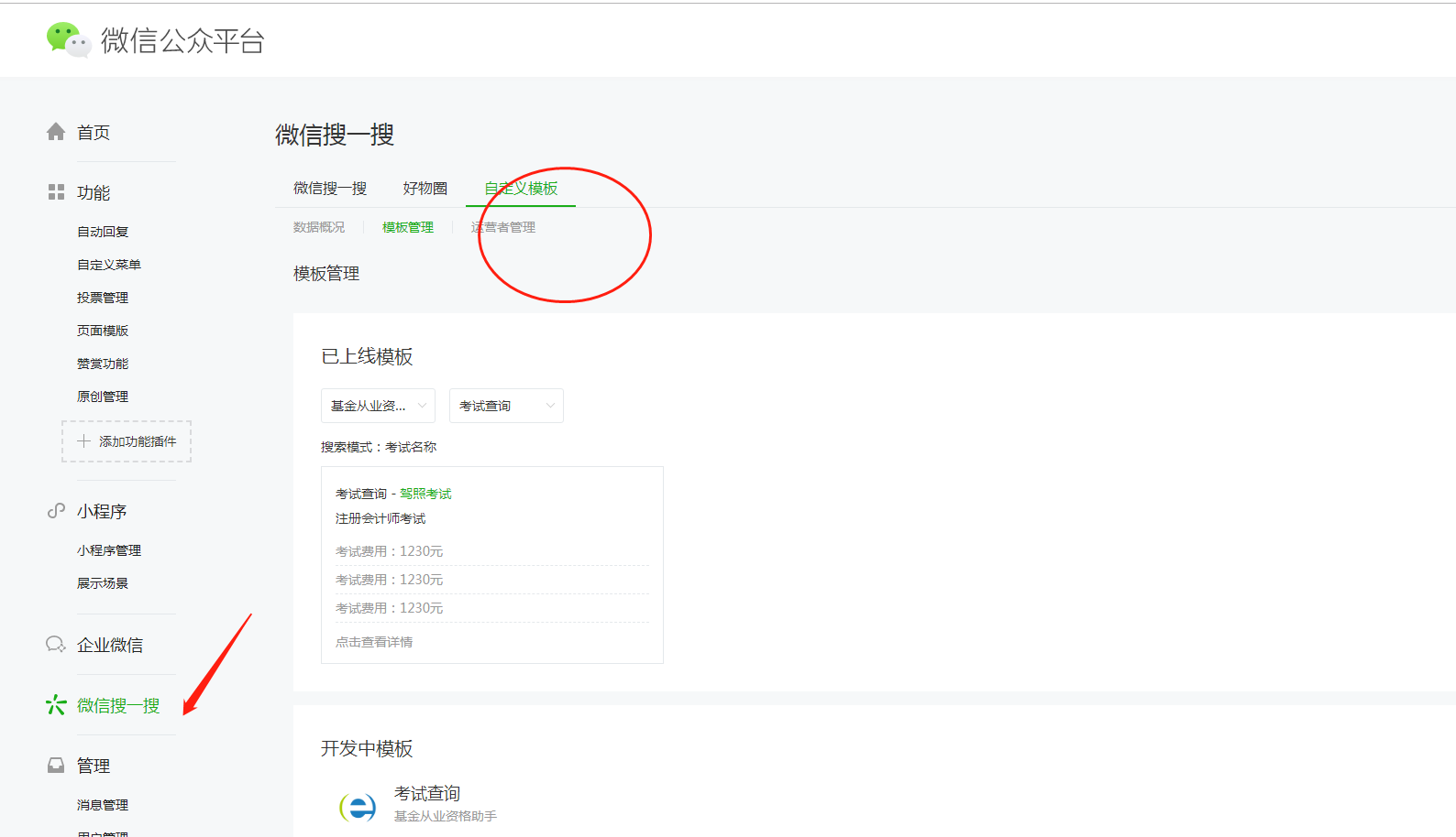 什么这些都不是我自己导入的 搜索数据。问下是怎么命中过来的嘛?公众号wxed52c44a8fcea91c 小程序wxec09ad32e97689a3模板名称 -- 考试查询