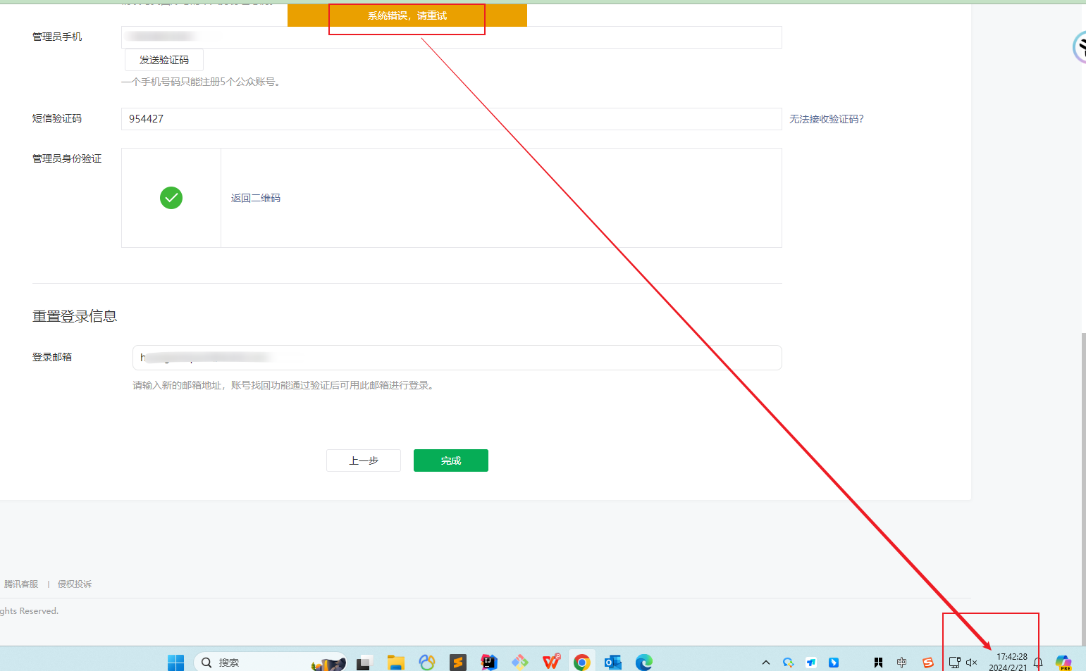 公众号被冻结,找回账号,提示系统错误