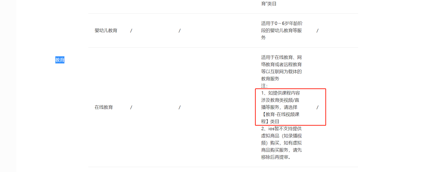 1、如提供课程内容涉及教育类视频/直播等服务,请选择【教育-在线视频课程】类目