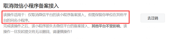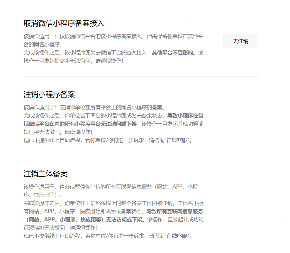 如题,刚刚走完小程序的主体变更,页面提示需要做小程序的备案变更,但做备案变更时又提醒需要先注销小程序备案,请问接下来怎么操作合适?注销小程序备案的话 会影响小程序的使用吗?