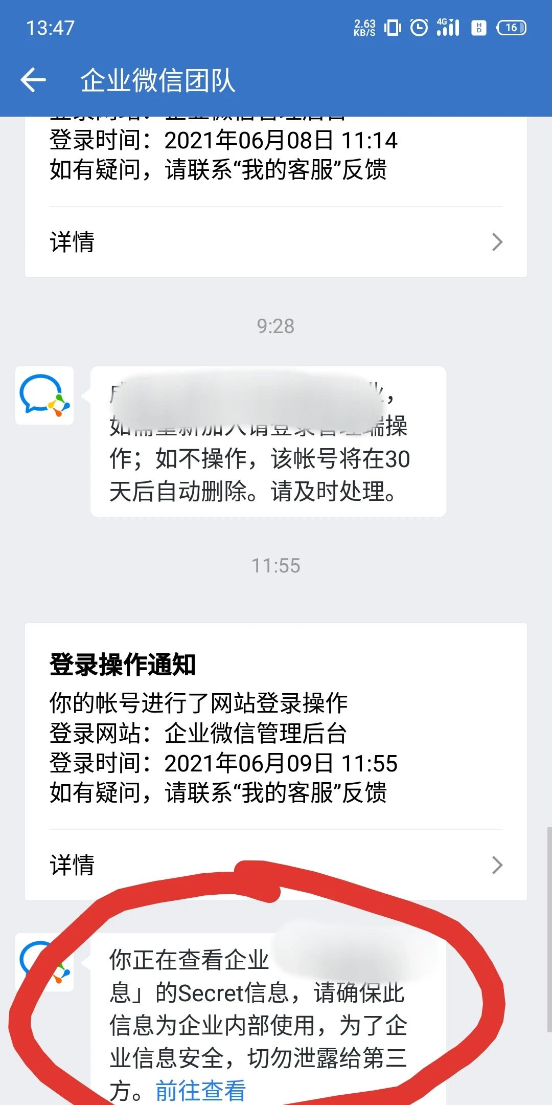使用登录微信后台的超管账号登录手机端企业微信app,有个消息,打开就能看到了。