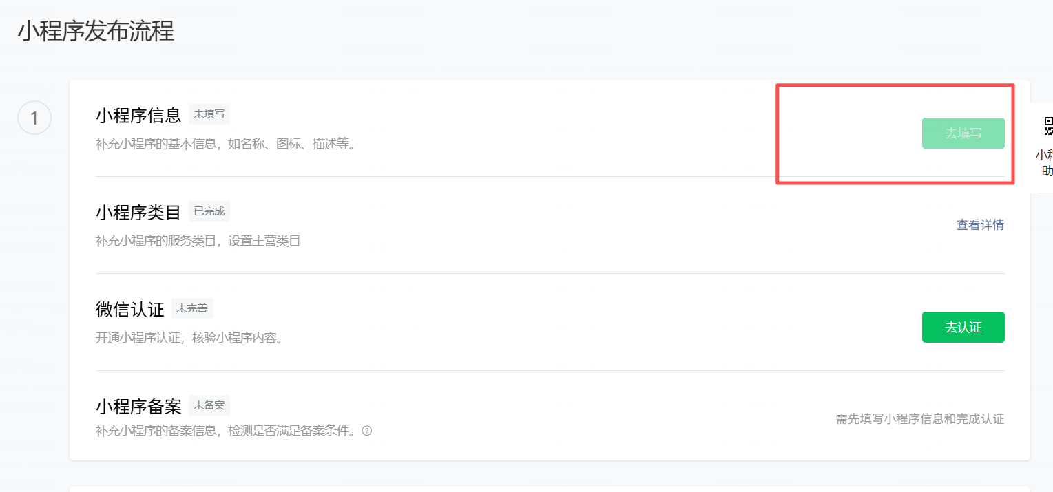 无法添加小程序信息(小程序名称等)按钮是灰色的。