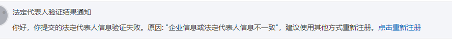 你好,核查发现填写的统一代码与营业执照上的统一代码不一致,故法人验证失败。请严格按照营业执照的统一代码填写。注意区分数字“0”和字母“O”