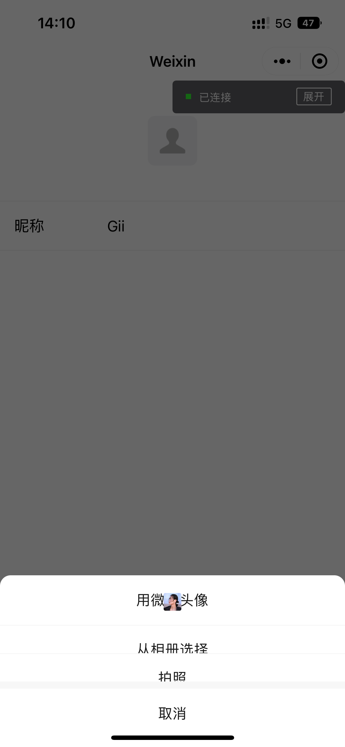 点昵称,弹出的“用微信昵称”缩成了一小条。