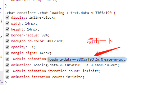 模拟器中要找到 “animation: loading .5s 0 ease-in-out;”这个样式,点击一下,页面才有反应。
