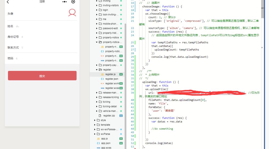 注册页面上传头像成功后,提交到后台接收,虽然图片选择成功了但是一直上传不成功,点击提交的时候一直提示请上传图片