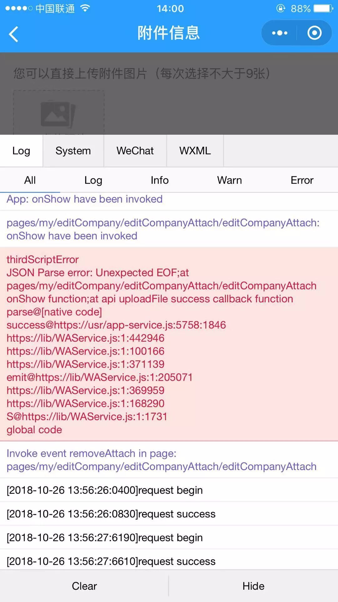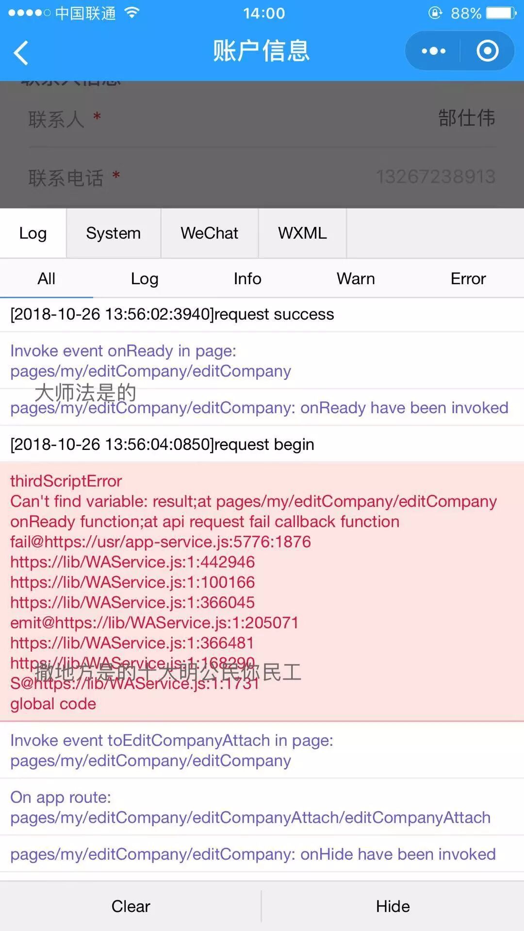 进入某一个页面出错,can't find variable at request fail callback function等错误提示。