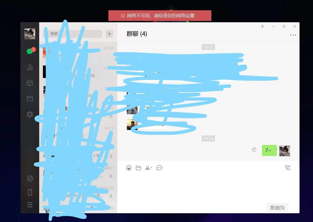 微信5-10分钟出现一次掉线的情况,但是我可以腾讯会议开几个小时会议。所以其它网络通讯并没有问题。