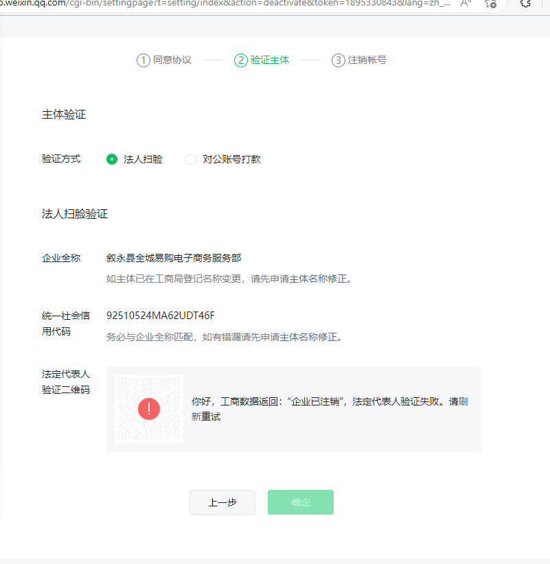 本人已经换行业了,想重新注册一个分享每日日常,之前我的营业执照已经注销,现在需要注销公众号,但是我扫脸以后,提示我营业执照不存在,不知道怎么注销了