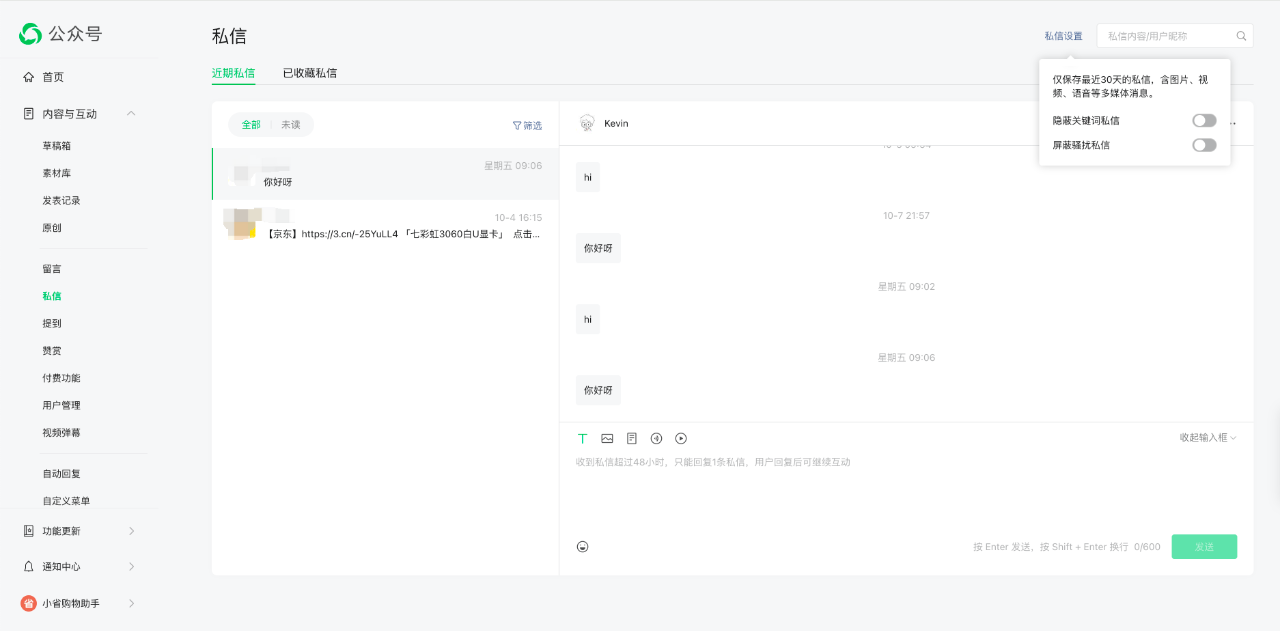 但是回到正式的公众号留言,服务端没有收到任何请求。这个和代码无关了。