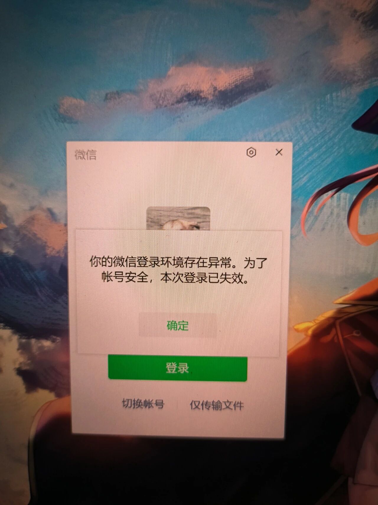 个人微信,在公司电脑上的微信,结果今天不知道为什么一直提示这个,扫了三四次了都,电脑也杀完毒也不是这事啊。。