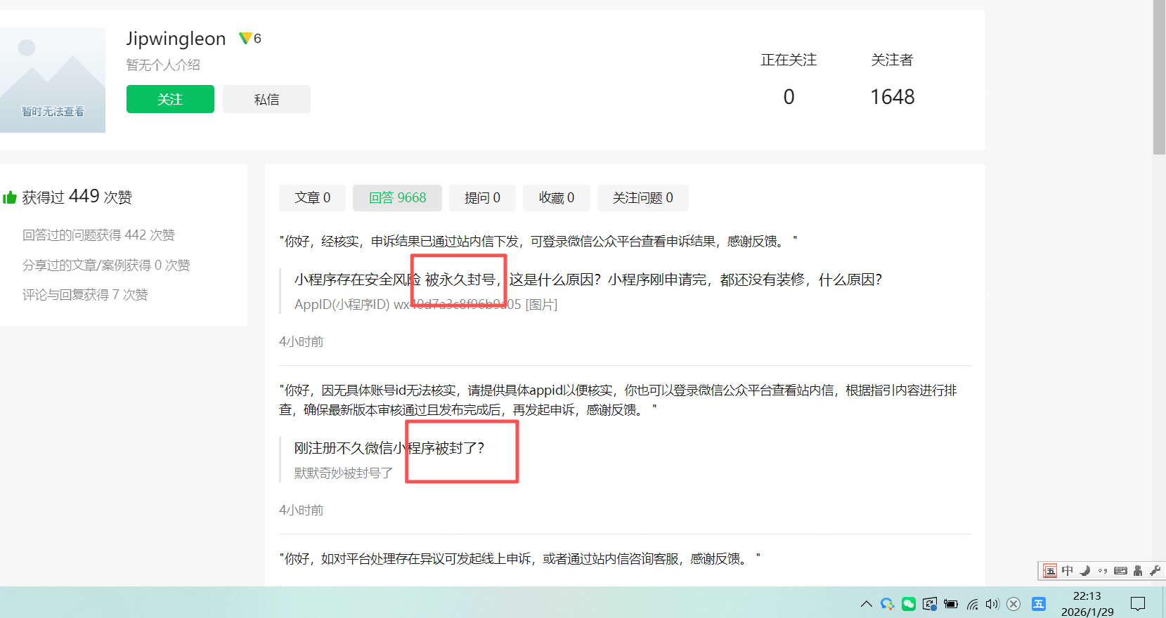 官方客服 Jipwingleon 的主页,点击进去全是 被封的帖子