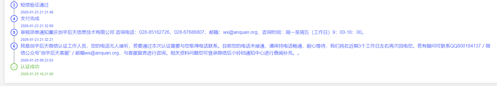 我在2026-01-23重新注册并又30元认证成功的小程序,2026-01-25上线后不到1小时,又收到提示经平台审核,此小程序恶意注册,已被封号处理。