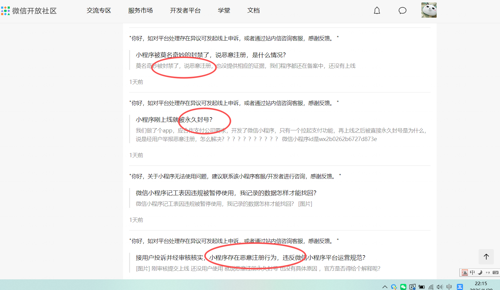 我查看了一下 交流专区的一写帖子,总结出来 全是AI客服自动回复,并且在客服的主页看到大量的 提示恶意注册 封号的帖子,腾讯是疯了吗,乱封??