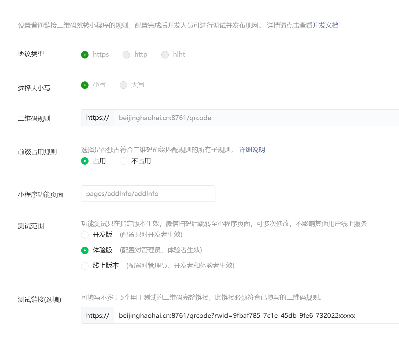另外尝试过其他的测试域名, 又可以跳转测试版,两个域名的二维码规则均未发布,请问是什么原因呢?