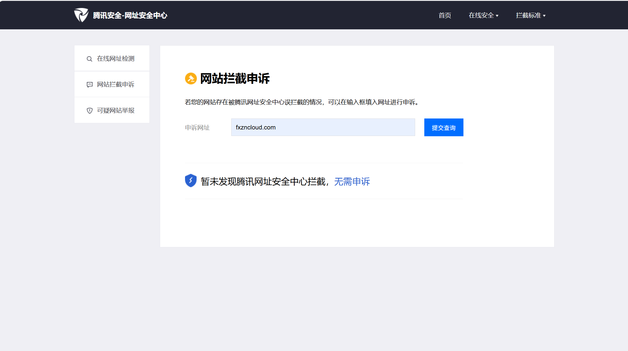 微信内访问网站出现“无法确认该网页的安全性,请谨慎访问”的拦截提示,网站符合《微信外部链接内容管理规范》,腾讯安全网址安全中心检测网页没有不安全的内容,请求核实后解除在微信内的访问拦截提示,谢谢!