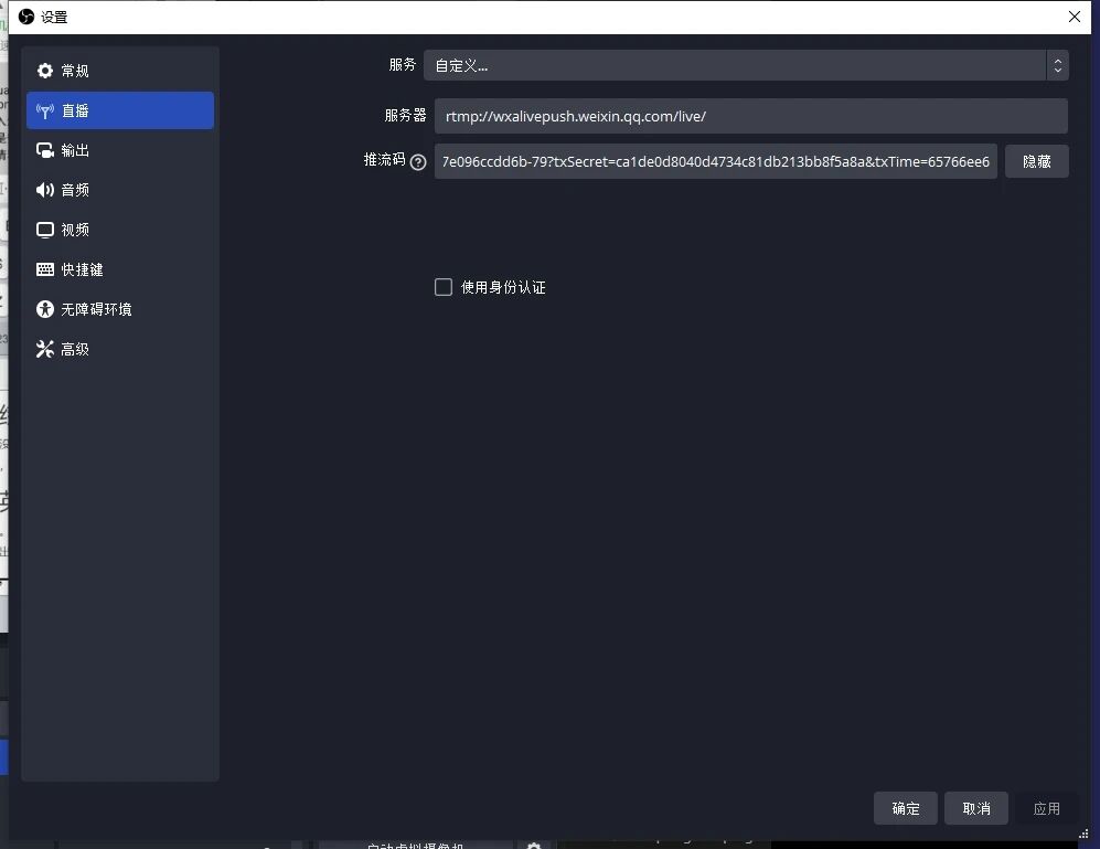 服务器:rtmp://wxalivepush.weixin.qq.com/live/