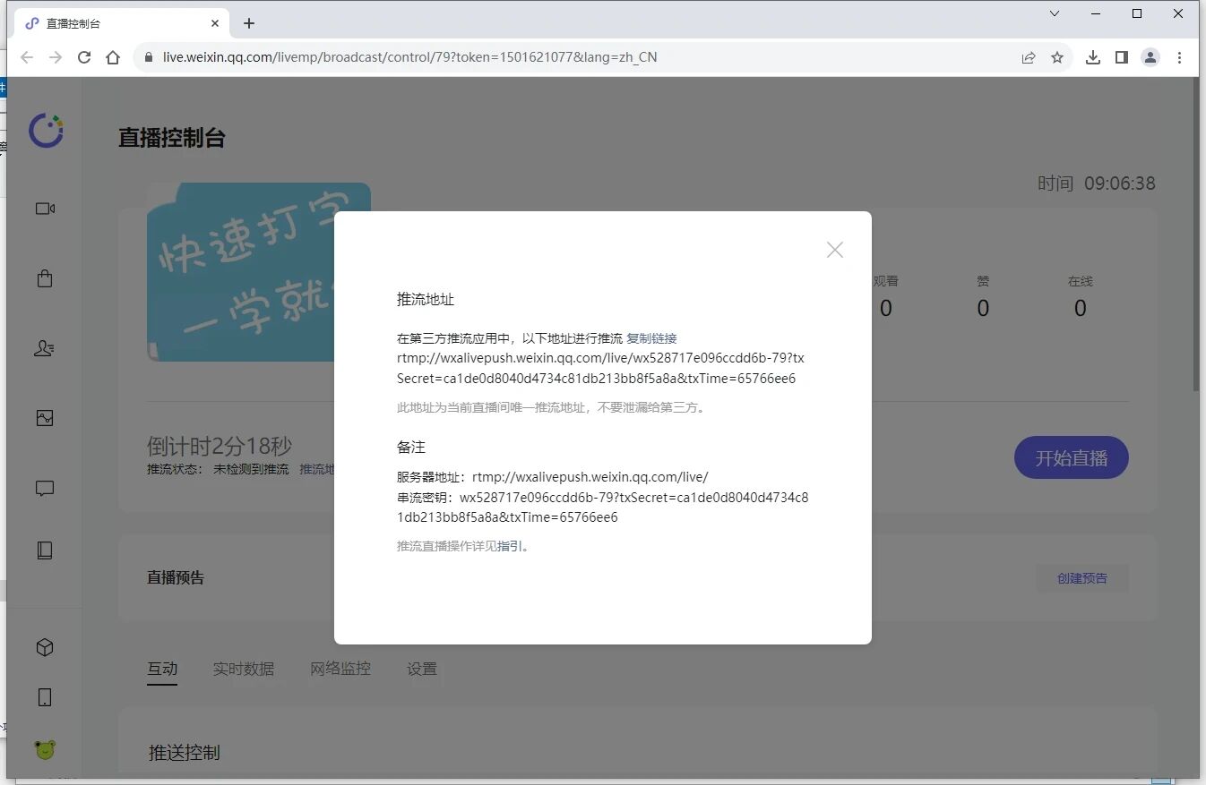 推流码:wx52866ccdd18a096b-80?txSecret=389bcc3e721a90a31482a5f37ecb8150&txTime=fa6576e1