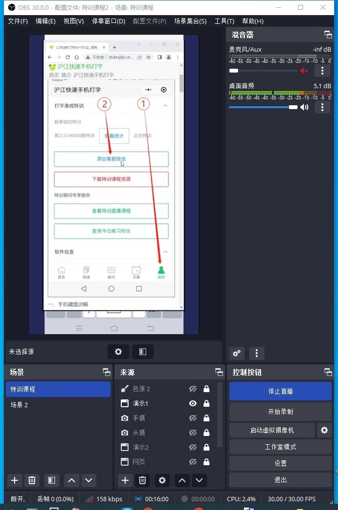OBS设置如下: