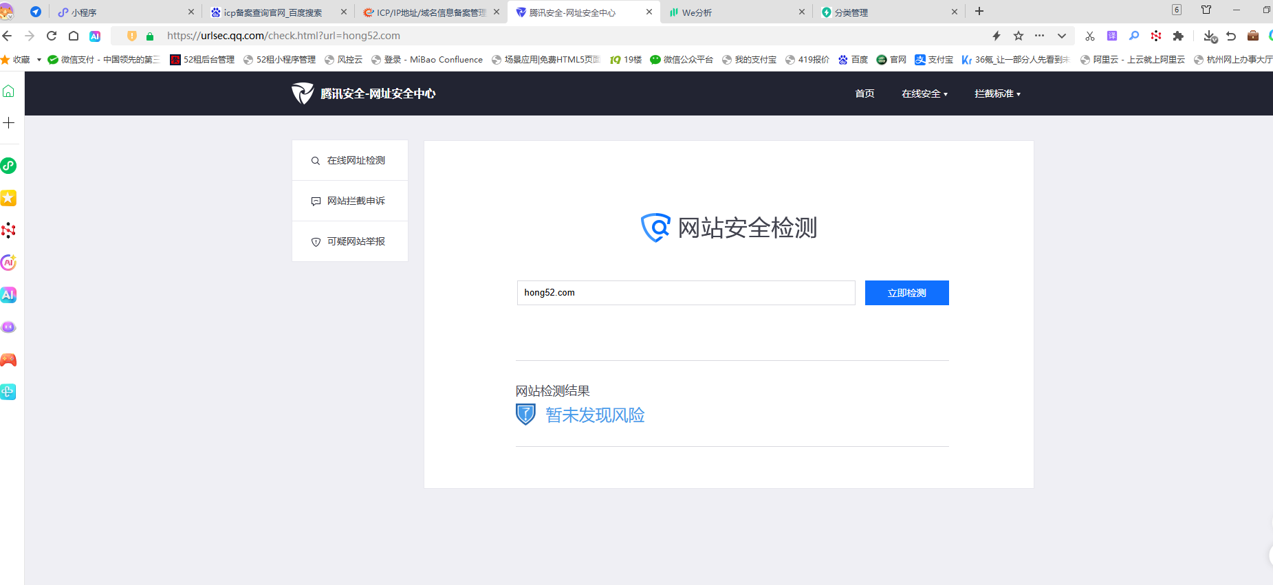 在微信打开企业备案域名 sj.hong52.com 网页就提示“无法确认该网页的安全性,请谨慎访问”。影响网站业务 请求官方人员介入核查: 1.我的域名已经企业备案,备案号为:浙ICP备2022012559号,可在其他浏览器正常访问并无风险提示 2.腾讯网址中心检测网址域名提示未发现风险无需申诉,证明网站在内容和安全方面符合腾讯相关规范。 3.服务器配置了SSL证书并强制了https访问,网页也没有发生跳转,网站无违法违规内容严格遵循腾讯相关规范.无客服聊天,只有腾讯官方的AI智能体,不涉及任何人工行为。