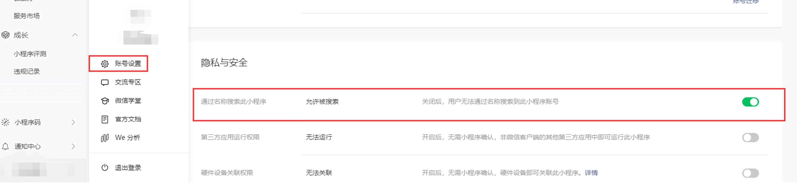 微信平台一直设置的是禁止搜索,但是我用陌生微信依旧可以搜索到小程序,是我中间少操作了什么步骤吗?