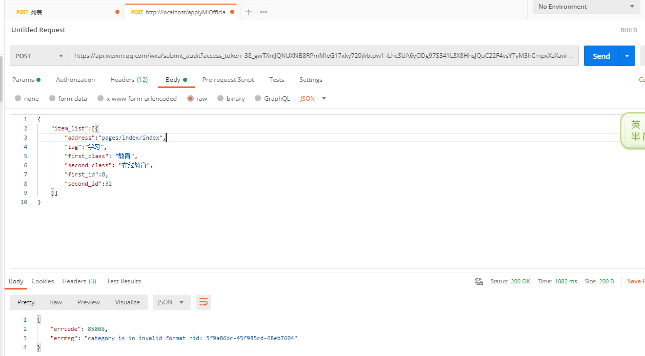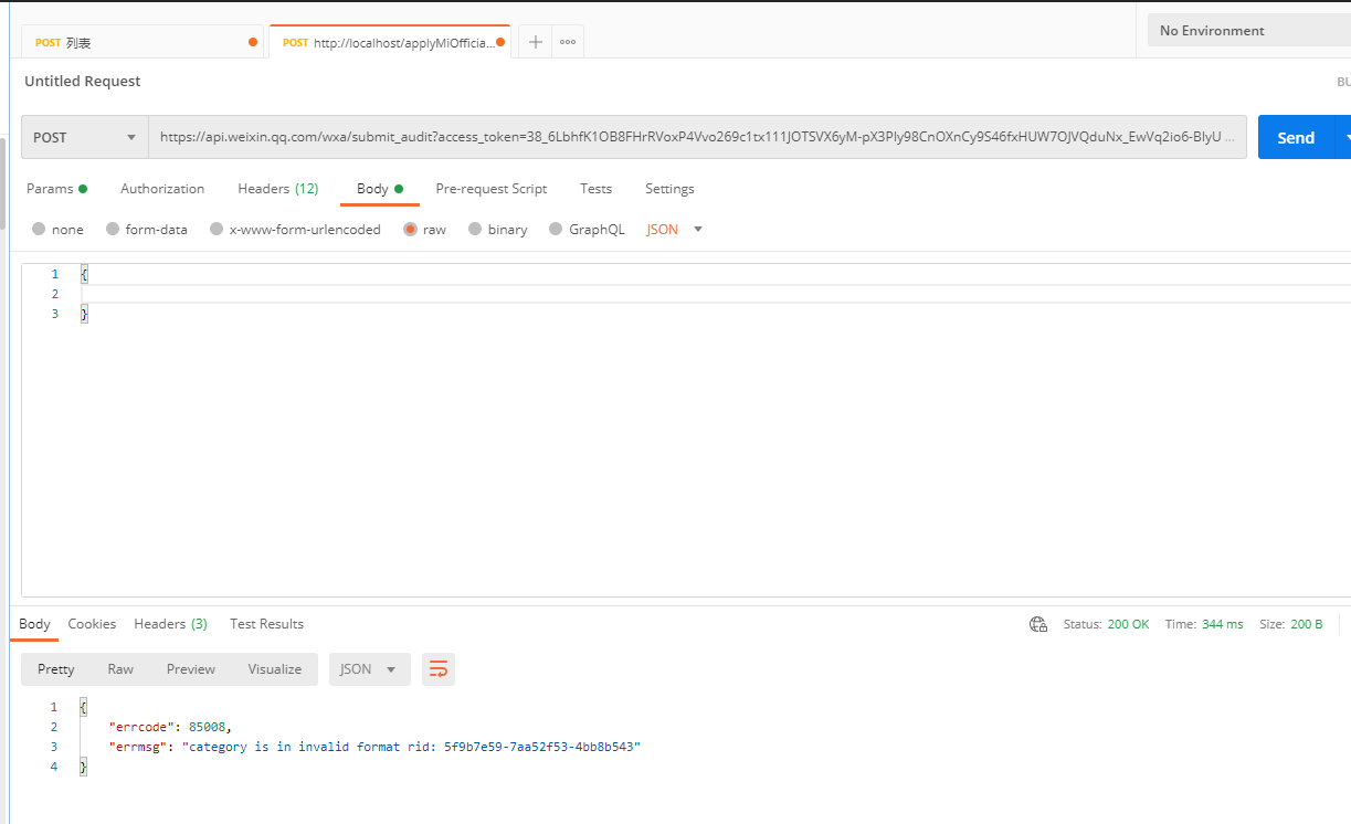 你好,85008指的是该小程序没有已经通过审核的类目,并不是参数填错了哈。请为该小程序添加类目&审核通过后重试哈。