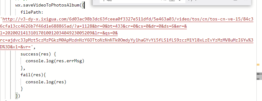 视频路径video 可以播放,但是无法下载,路径是后台返回临时路径,错误:errMsg: "saveVideoToPhotosAlbum:fail file not found"