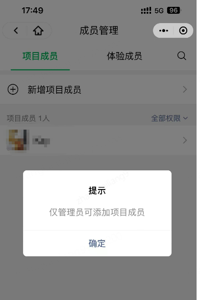 我本身是小程序管理员,登录小程序测试号添加项目成员时显示仅管理员可添加如何解决?