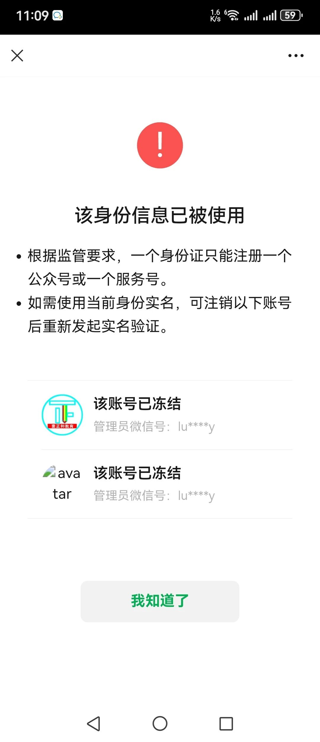 上面显示身份信息被使用需要注销原来的账号,而原来的账号的管理员已经收获去世好几年了,根本没有办法联系。请问我这样的情况怎么去注销?怎么做公众号的实名认证?