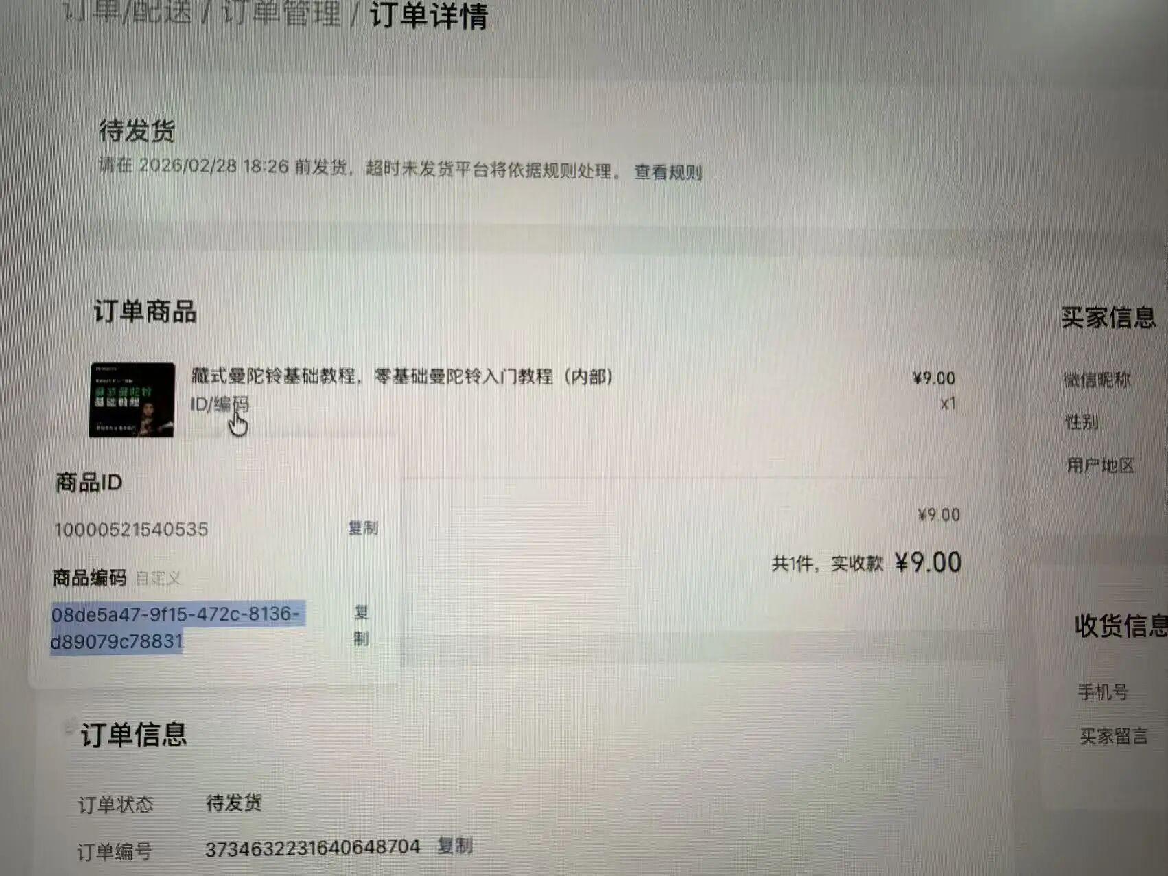 如图,订单详情和商品详情都能看见这个编码,文档也说返回了,但我实际调用,接口没有返回。