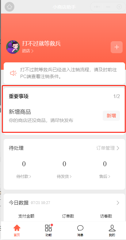 1.微信搜小商店助手-首页 看下是否有信息还没完善